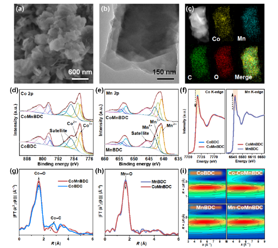 - 使用BET方法对CoMnBDC的比表面积进行分析,结果为15.70 m2·g−1,远高于MnBDC的5.61 m2·g−1。