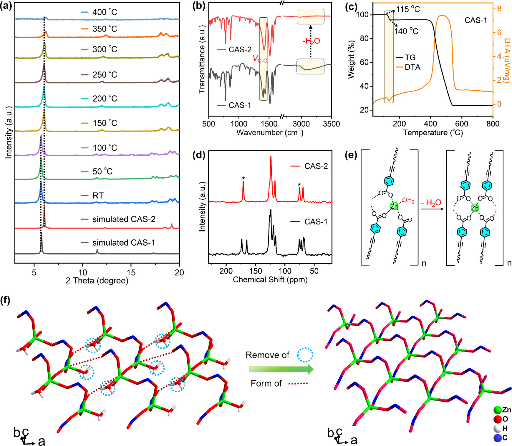 TGA分析显示CAS-1在115-140 °C范围内有轻微的重量损失,归因于配位水分子的丢失。