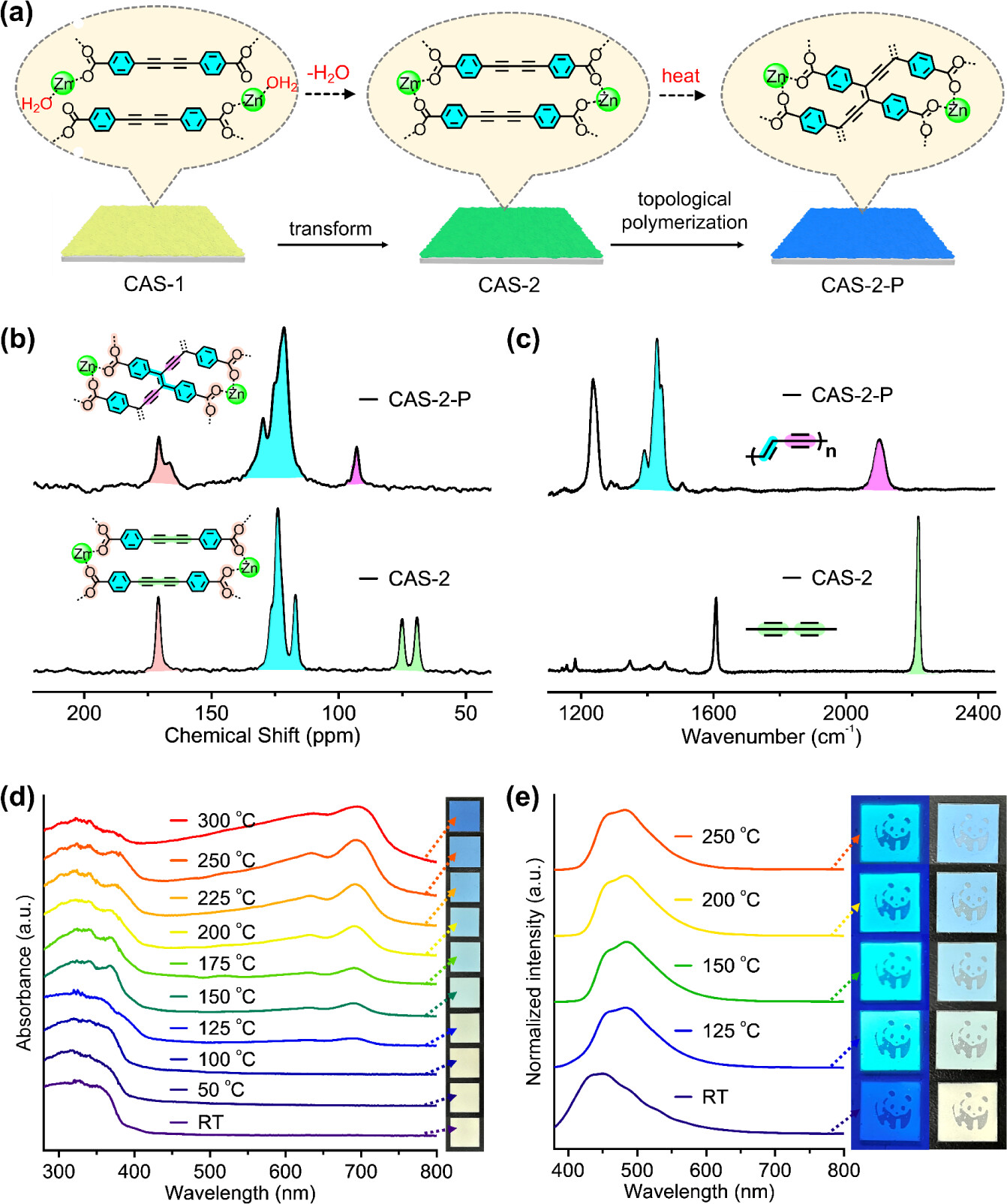 通过固体核磁共振(NMR)、拉曼光谱、紫外-可见光谱(UV-vis)和光致发光(PL)光谱分析了CAS-1薄膜在不同温度下的聚合反应。
