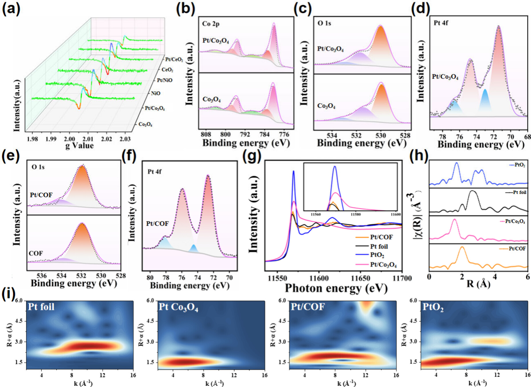 - Pt/Co3O4和Pt/COF的EPR谱图显示了特征的氧空位(OV)峰,表明Ptδ+与OV之间存在相互作用。