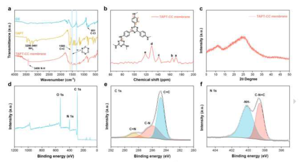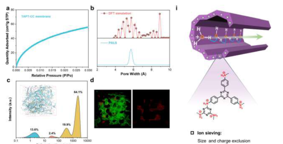 1) CO2吸附实验表明,TAPT-CC膜的CO2吸附量在1 bar下为2.5 mmol/g,表明具有发达的微孔结构。