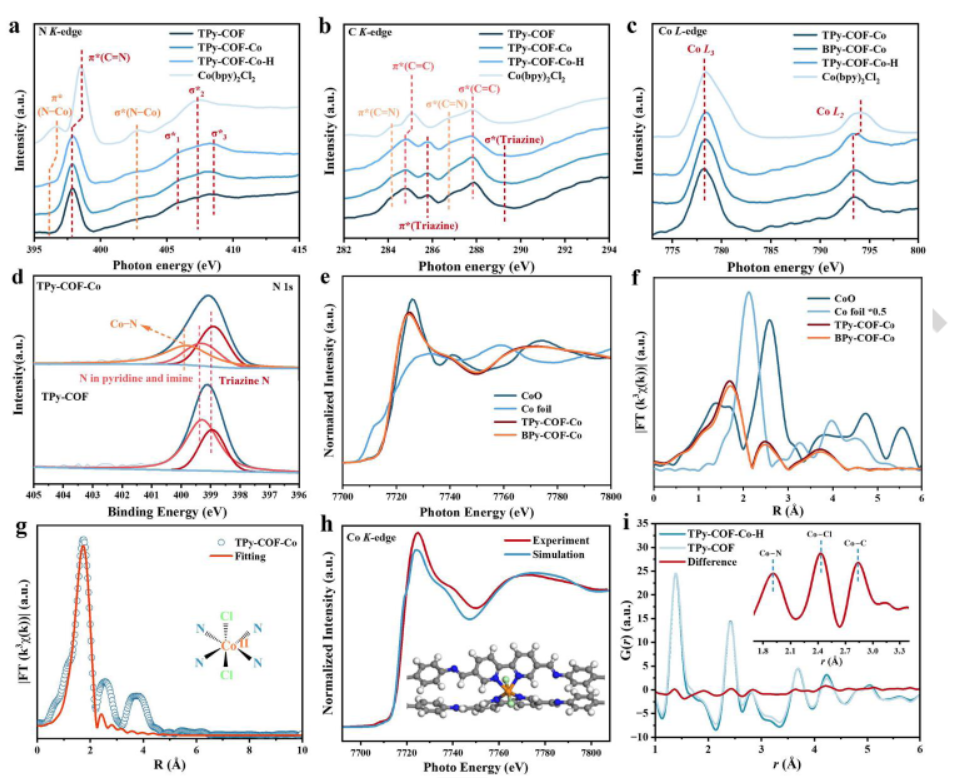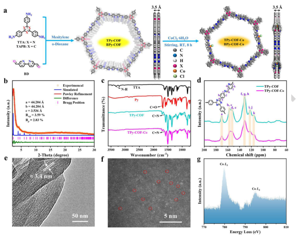 - 将TPy-COF与Co源混合,通过控制热处理将Co物种负载到TPy-COF上,形成TPy-COF-Co。