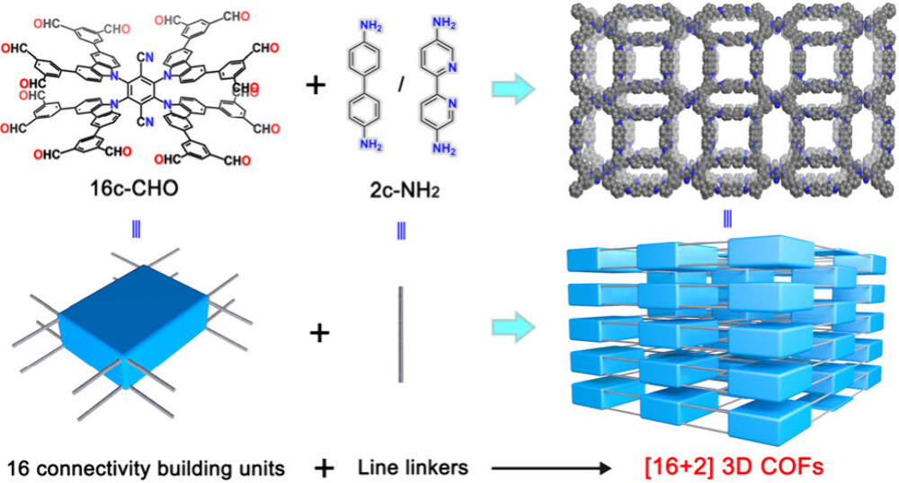1)在COFs的结构设计领域,构建单元的连通性(价数)通常不超过12,这限制了三维COFs的进一步发展。