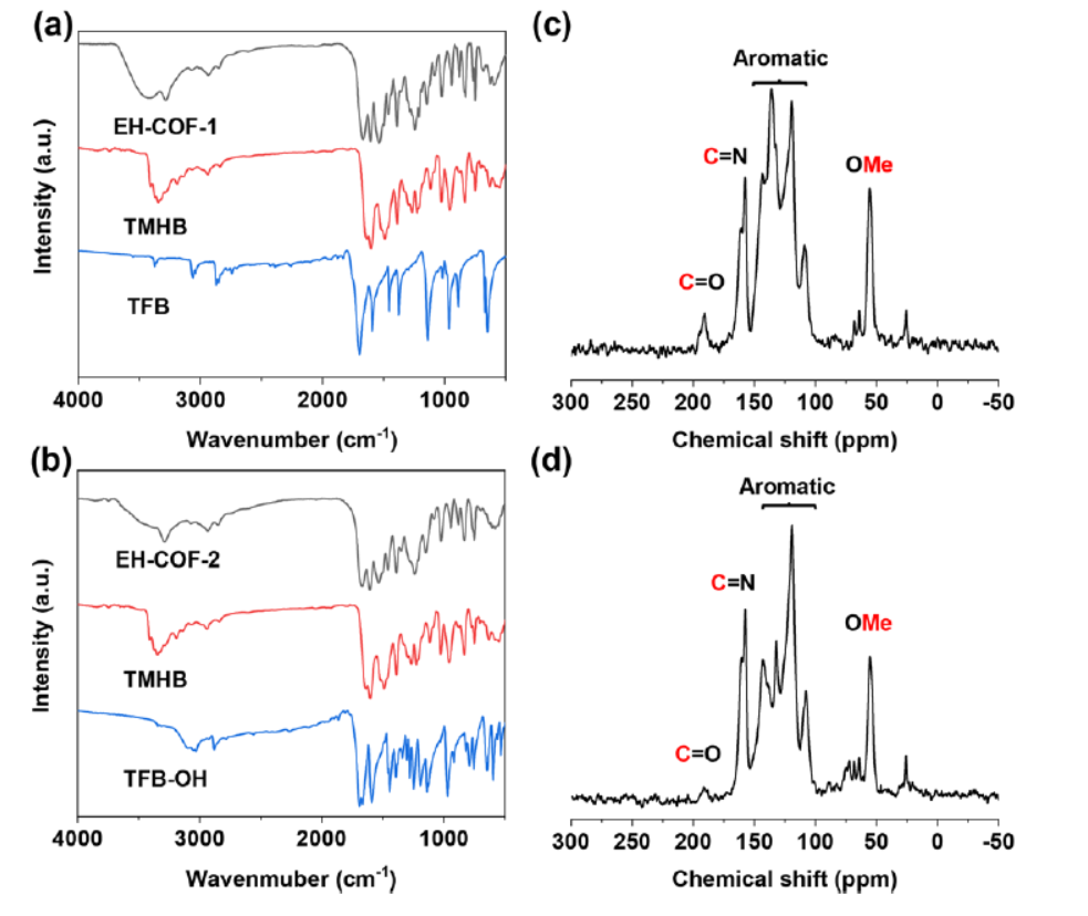 2) 通过傅里叶变换红外光谱(FT-IR)分析EH-COFs的官能团。