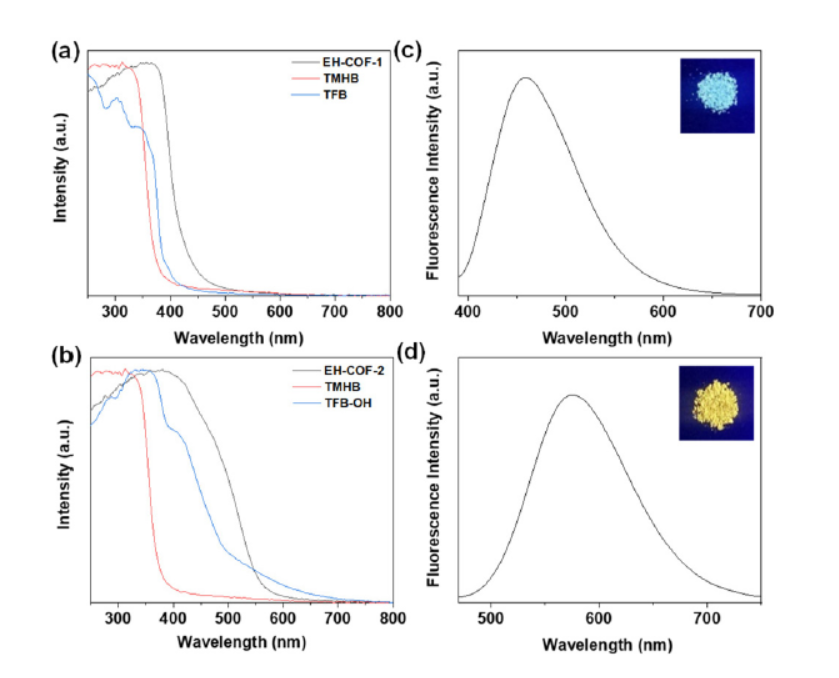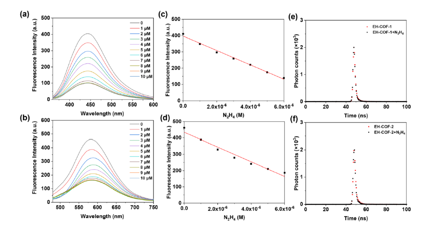 1) EH-COFs对水合肼的荧光猝灭效果显著,检测限分别达到51 nM和28 nM。