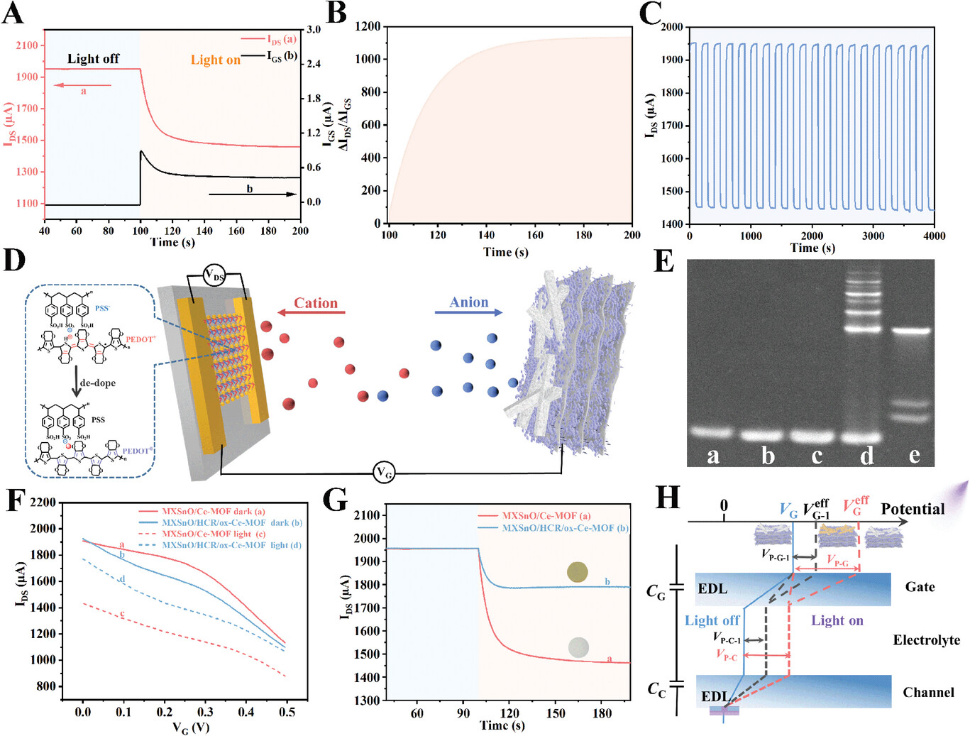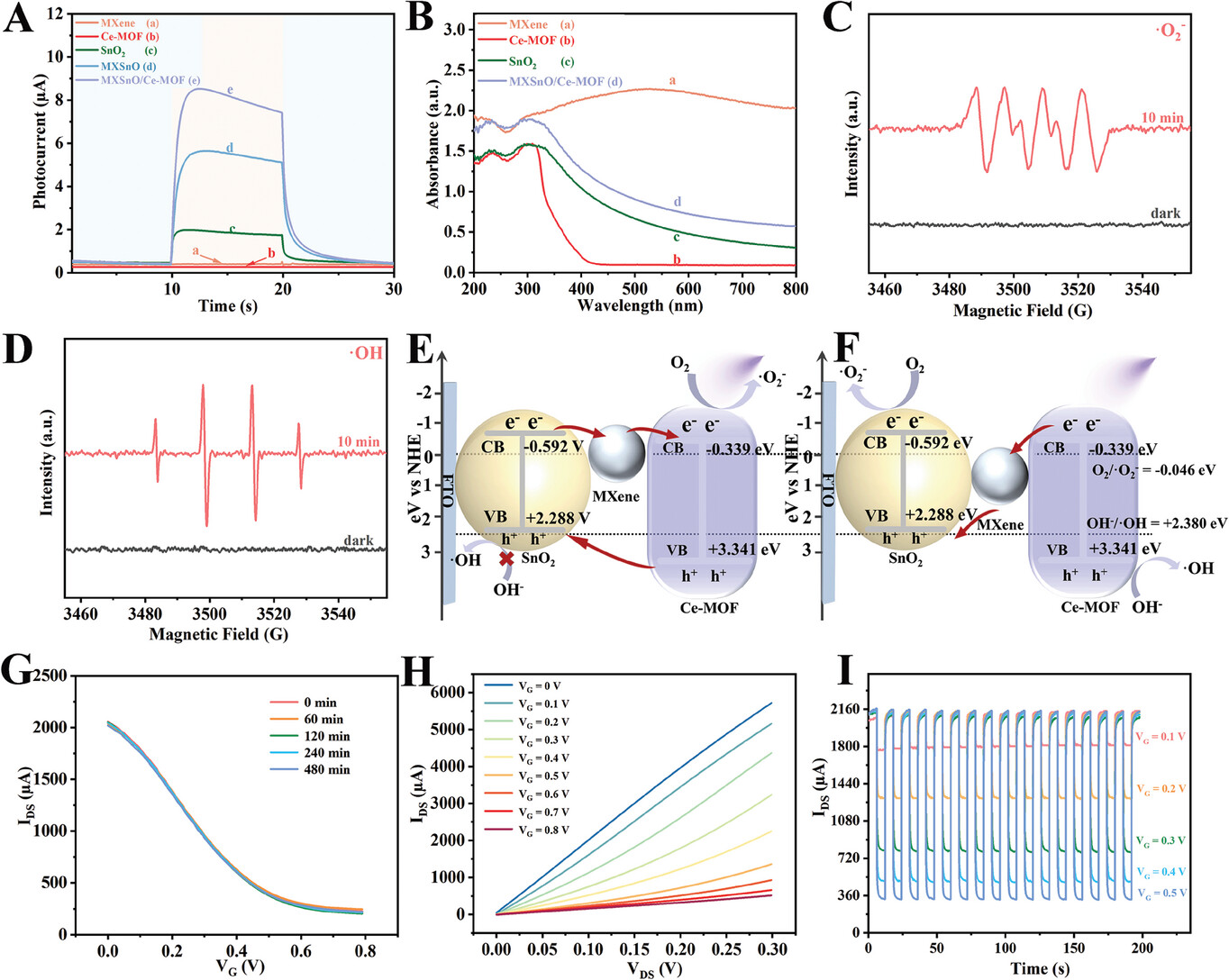 - 瞬态光电流响应测试显示MXSnO/Ce-MOF具有显著的光电流响应,表明其优异的光电性能。