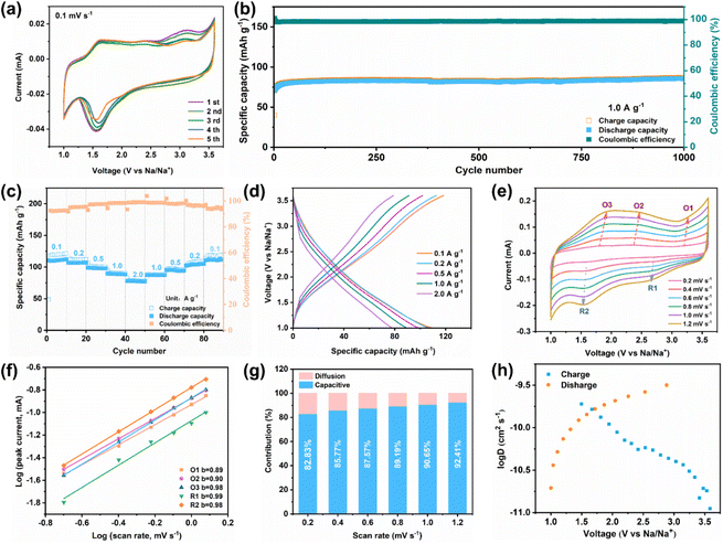 7) 动力学分析:通过不同扫描速率的CV曲线分析了反应动力学,发现电池过程主要由电容行为控制。