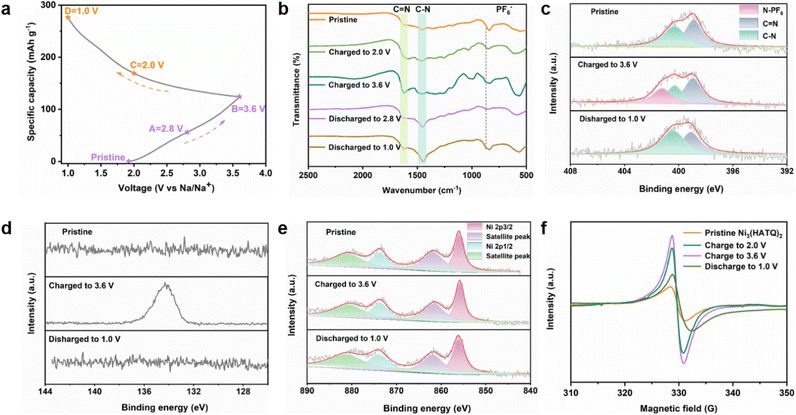 8) 离子存储机制研究:通过原位FT-IR、XPS和EPR光谱分析了充放电过程中的结构变化,揭示了Na+和PF6−的共存储机制。