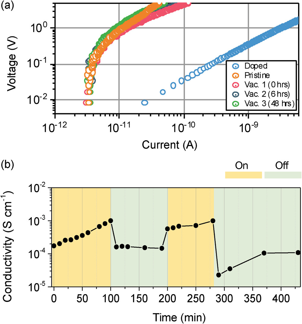 4) 电导率测量:通过在真空中进行的I–V测量,评估了掺杂前后的电导率变化。