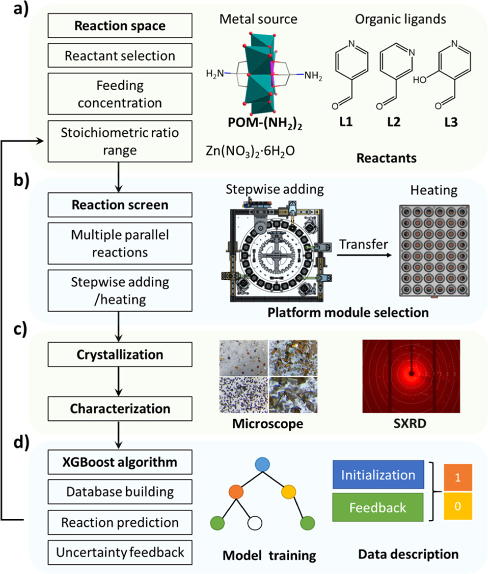 - 实验步骤:通过XGBoost模型训练,基于实验结果的不确定性反馈,选择进行实验的反应条件。实验完成后,将结果添加到模型的数据集中,并重新训练模型。