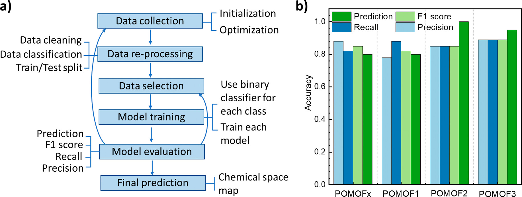 3)本文作者开发了一种机器学习算法,与机器人合成平台集成,通过闭环探索POMOFs的化学空间,优化了XGBoost模型,并通过χDL提高了合成的可重复性,发现了新的POMOFs结构。