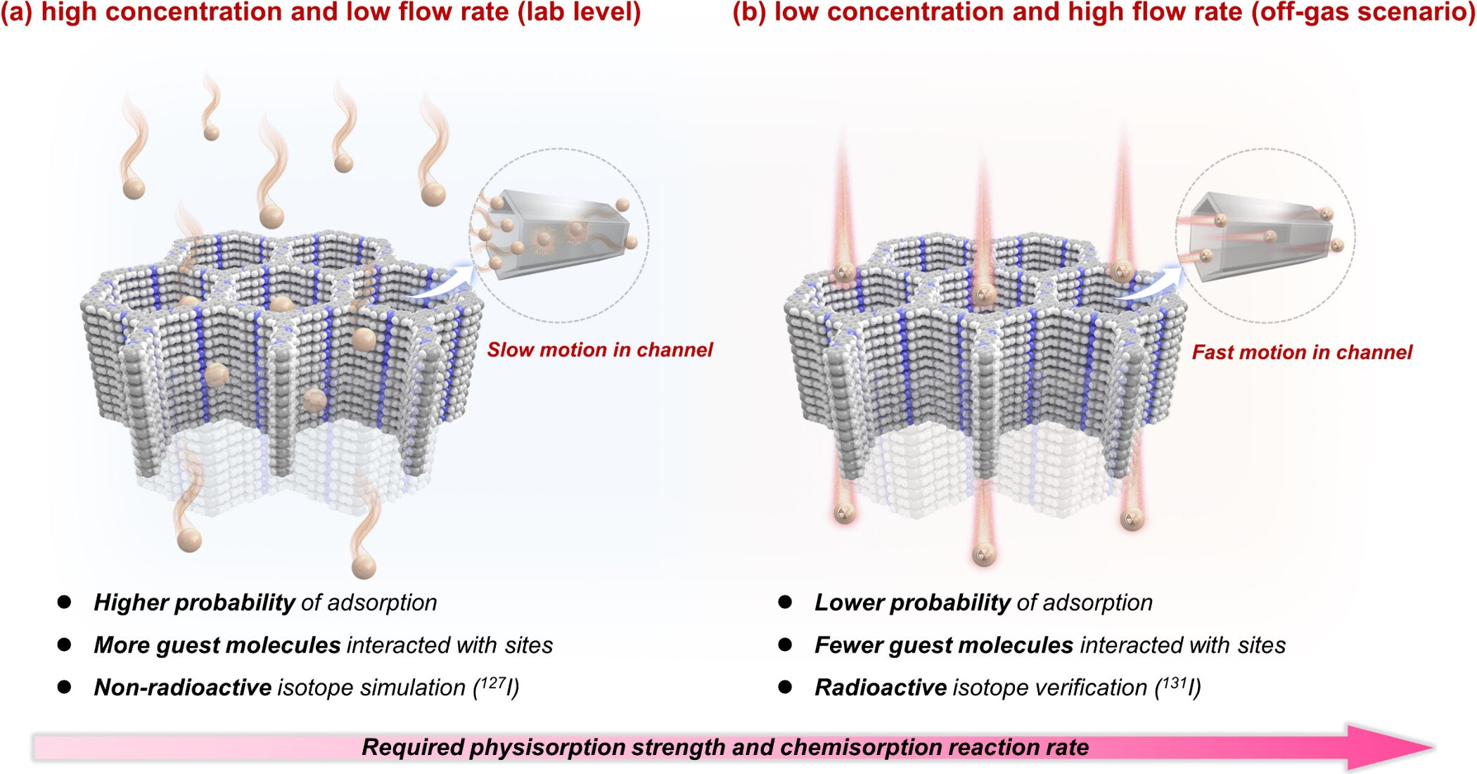 1) 核能发展、核废料管理以及放射性废物和医疗废物的安全处置中,去除放射性气体碘特别是甲基碘化物是一个关键问题。现有技术在低浓度和高流速的实际工况下捕获甲基碘化物的能力有限。