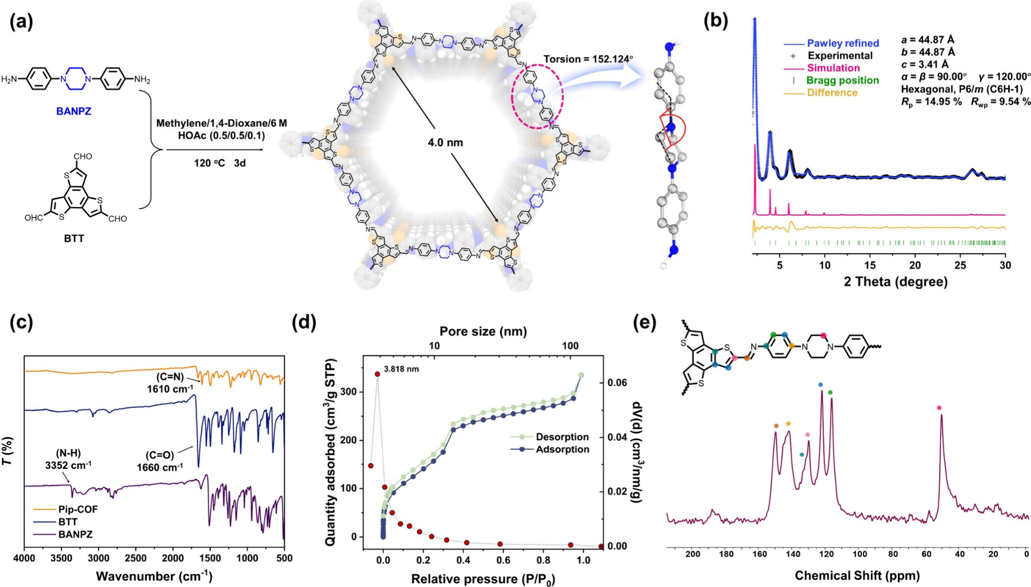- Pip-COF的热重分析显示其在400°C下保持结构稳定。