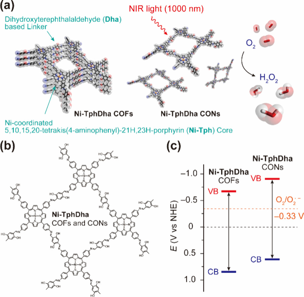 【Ni-TphDha COFs】基于金属卟啉的共价有机框架和纳米盘的近红外光驱动H2O2生成