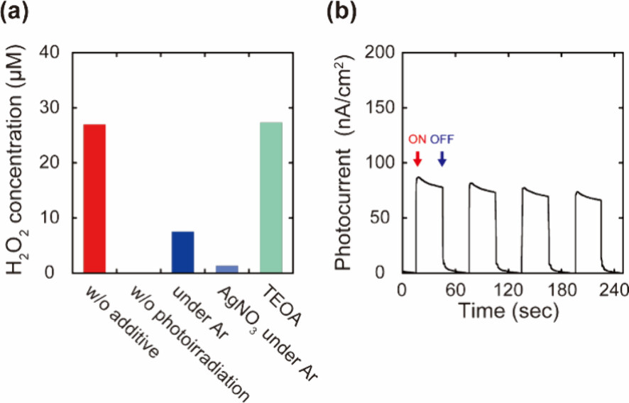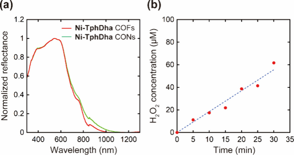1) 在可见光照射下,Ni-TphDha COFs 30分钟内H2O2浓度达到61 μM,表观量子产率(AQY)为2.3%。