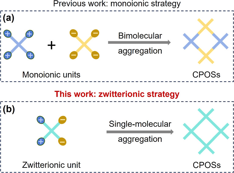 3) 本文创新:本研究提出了Zwitterionic策略,使用单一带有正负电荷基团的构建单元,简化了CPOSs的合成过程,并通过精细调控初始构建单元来精确控制最终CPOSs的结构。