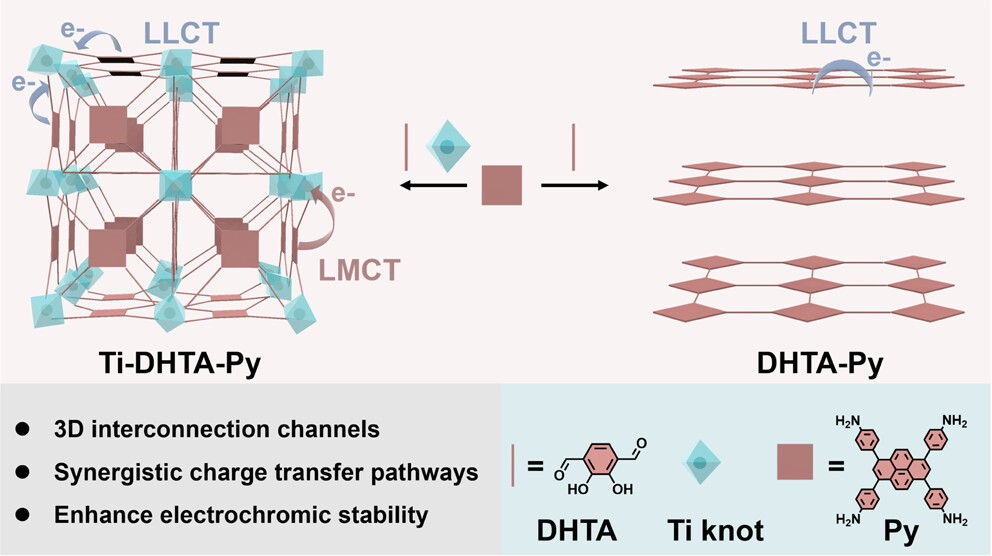 【金属配位COF】电致变色三维金属化共价有机框架中通过Ti-Knot路径促进电荷转移