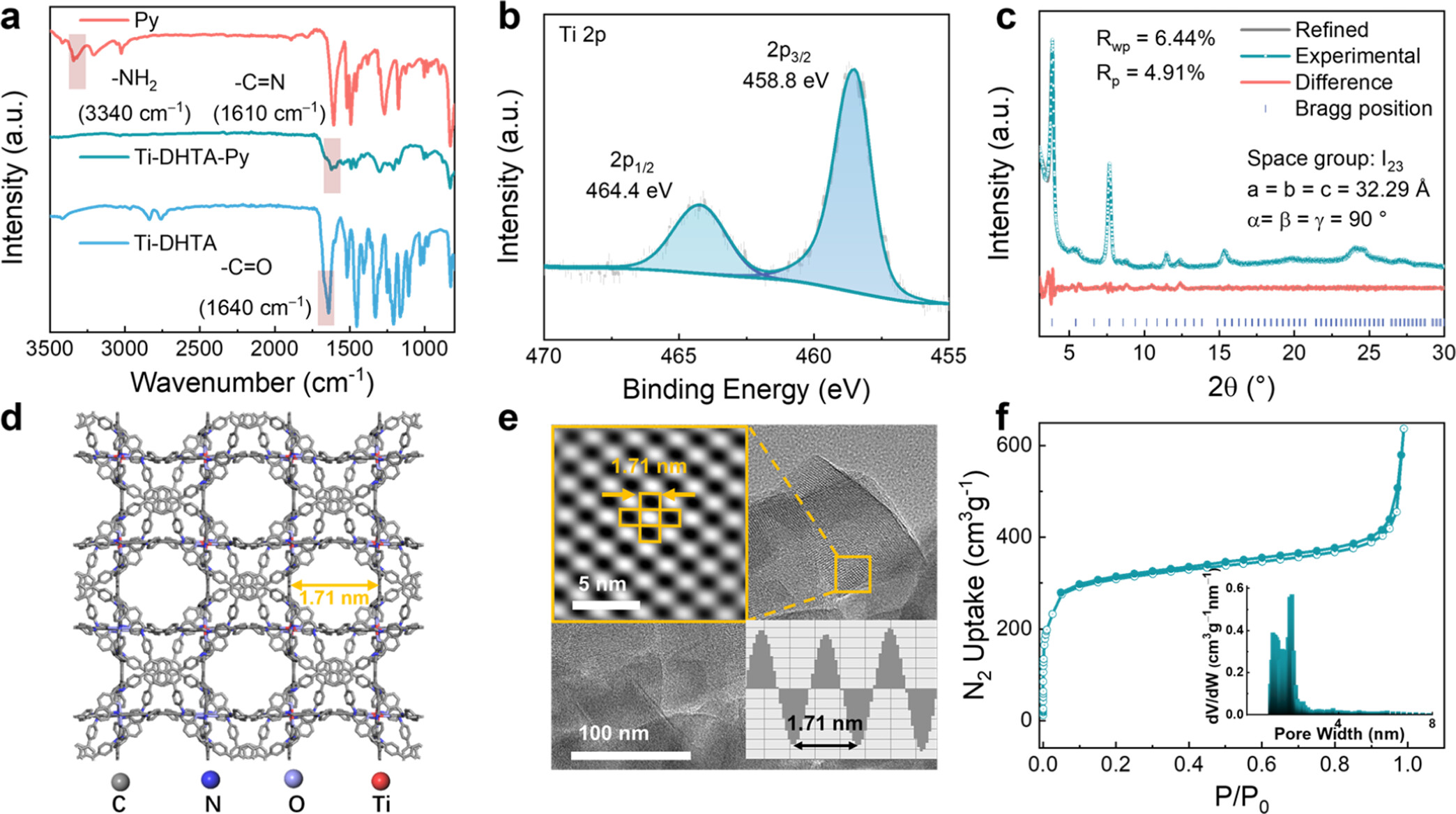1) Ti-DHTA-Py的空间群为I23,晶胞参数a = b = c = 32.29 Å,α = β = γ = 90°。