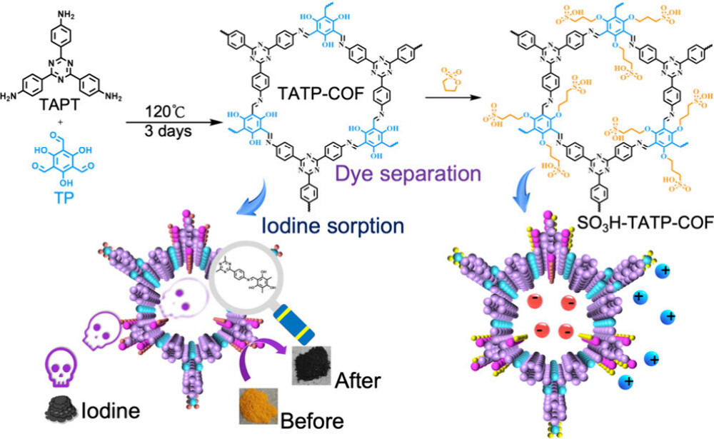 行业动态 > 【可磺酸化COF】具有超高碘吸附和染料选择性的丝状共价有机框架