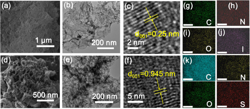 - SEM和TEM图像显示TATP-COF具有紧密堆积的纤维状结构,HRTEM图像显示(001)晶面的平面间距为0.25 nm。