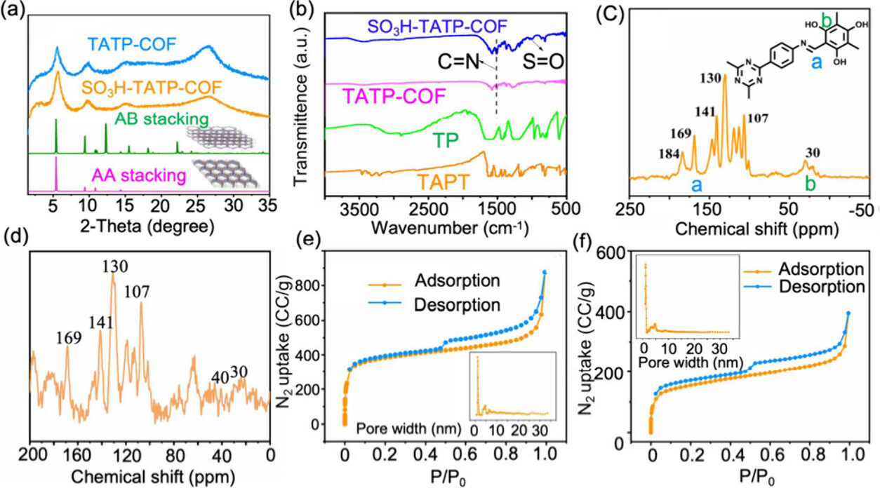 - PXRD峰图与模拟结果一致,证实了TATP-COF的AA堆叠结构。