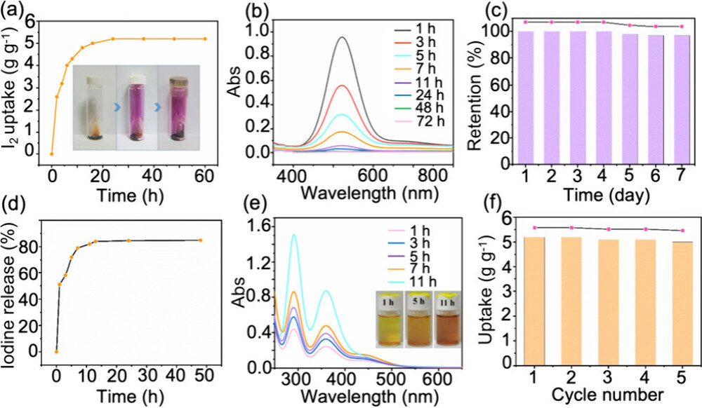 2)其他学者解决方案:已有研究通过多孔碳、多孔有机聚合物、气凝胶和金属-有机框架(MOFs)等材料设计来处理碘。这些材料通过物理化学相互作用来捕获碘。